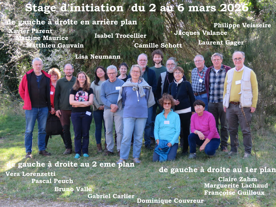 Stage d'initiation de février 2022 (de gauche à droite derrière Gabriel Carlier - Bertrand Masson - Michael Busnello - Jilann Tirmarche - Antoine Guilbaud - Natacha Muller - Antoine Larré - Caroline Dagneau - Alice Brissoit - Marie-Claude Derrien de gauche à droite devant Christine Scheirlinckx - Françoise Guilloux - Nathan Guillaume)